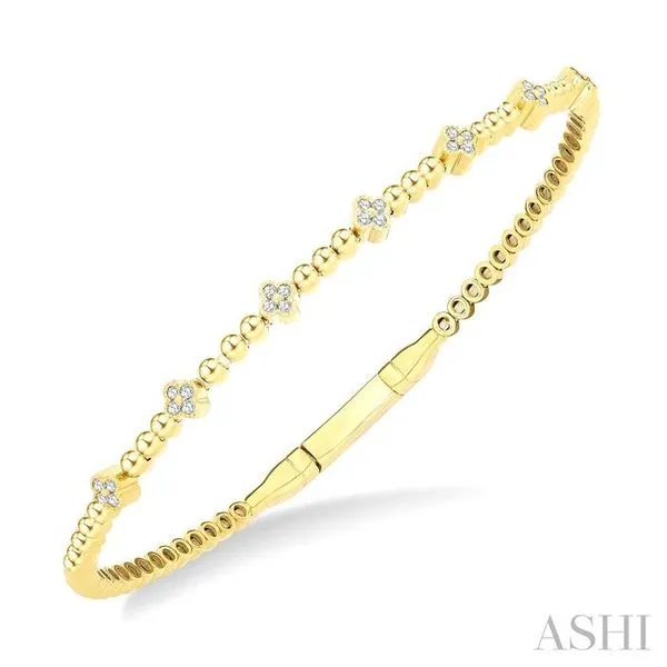 (256) 764-40131/6 Ctw Round Cut Diamond Clover Bead Fashion Bangle in 10K Yellow Gold