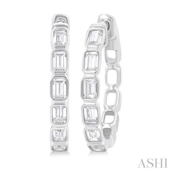 (256) 764-40131 1/10 Ctw Bezel Set Emerald Cut Diamond Fashion Hoop Earring in 14K White Gold
