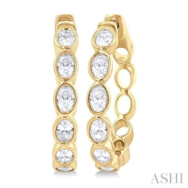 (256) 764-40131 1/10 Ctw Bezel Set Oval Cut Diamond Fashion Hoop Earring in 14K Yellow Gold