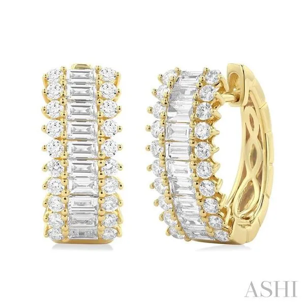 (256) 764-40131 1/3 Ctw Horizontal Layout Baguette and Round Cut Diamond Fashion Huggie Earrings in 14K Yellow Gold