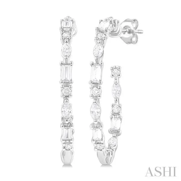 (256) 764-40131 1/6 Ctw Inside & Outside Mixed Diamond Cut Fashion Open Hoop Earrings in 14K White Gold