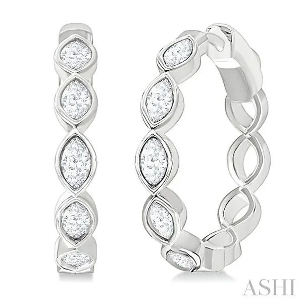 (256) 764-40131 Ctw Bezel Set Marquise Cut Diamond Fashion Hoop Earrings in 14K White Gold