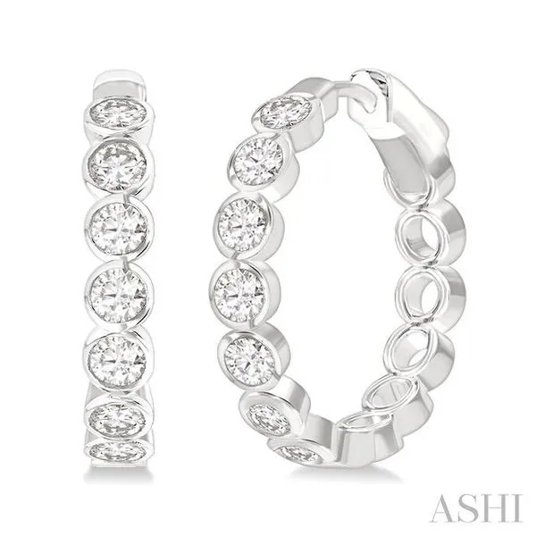 (256) 764-40131 Ctw Bezel Set Round Cut Diamond Fashion Hoop Earrings in 14K White Gold