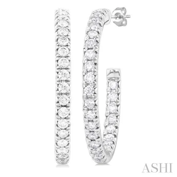 (256) 764-40131 Ctw French Pave Set Round Cut Diamond Fashion Half Hoop Earring in 14K White Gold
