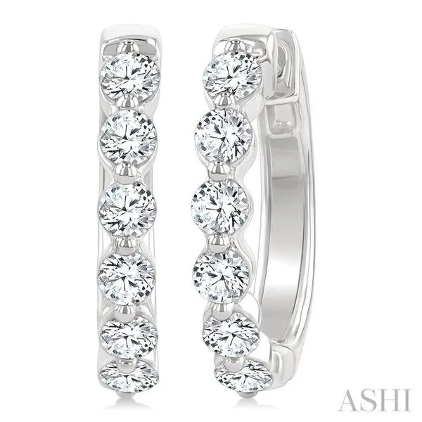 (256) 764-40131 Ctw Prong Set Round Cut Diamond Hoop Earrings in 14K White gold