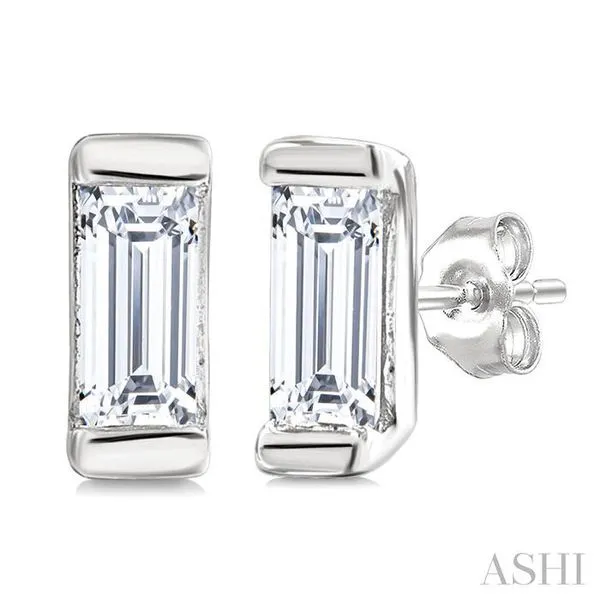 (256) 764-40131/10 Ctw Baguette Diamond Petite Fashion Earrings in 10K White Gold