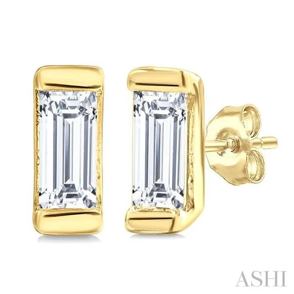 (256) 764-40131/10 Ctw Baguette Diamond Petite Fashion Earrings in 10K Yellow Gold