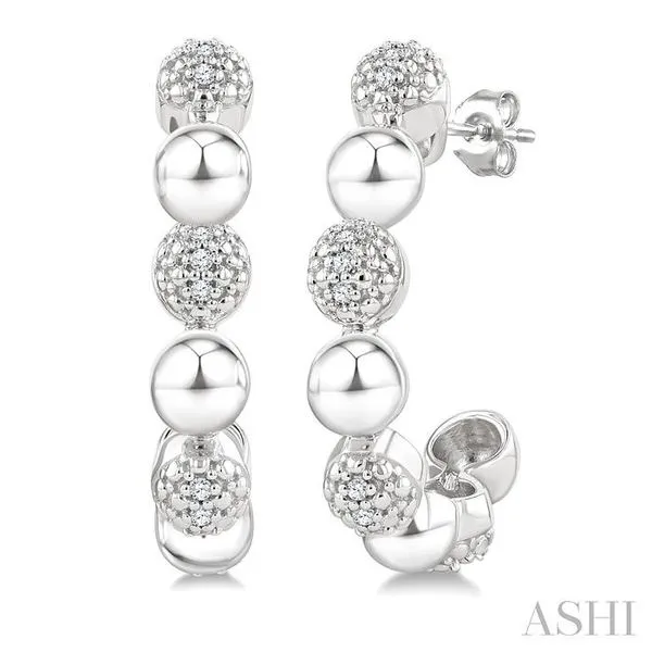 (256) 764-40131/10 Ctw Bold Bead Design Single Cut Diamond Fashion Half Hoop Earrings in Sterling Silver
