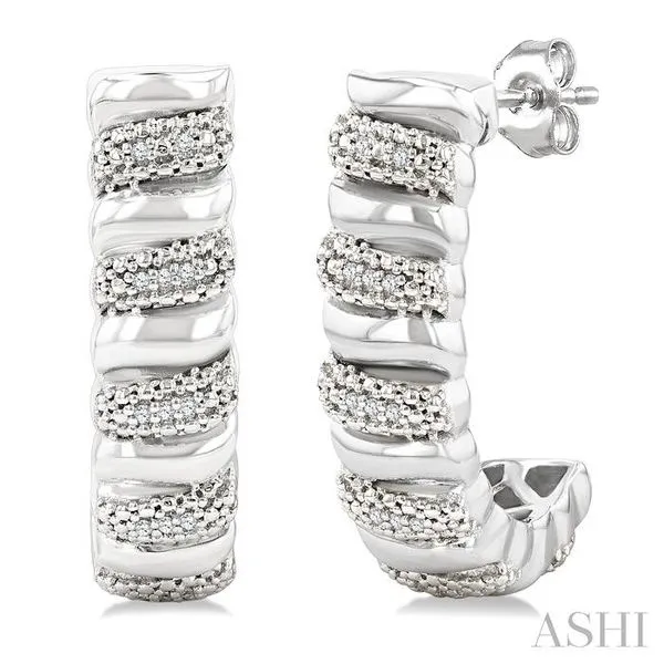 (256) 764-40131/10 Ctw Bold Silver Ribbed Swirl Round Cut Diamond Bold Half Hoop Earring in Sterling Silver