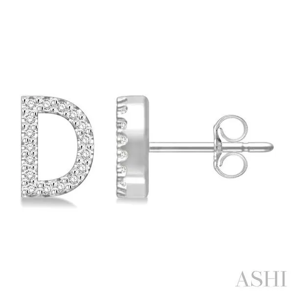 (256) 764-40131/10 Ctw Initial 'D' Round Cut Diamond Earrings in 10K White Gold