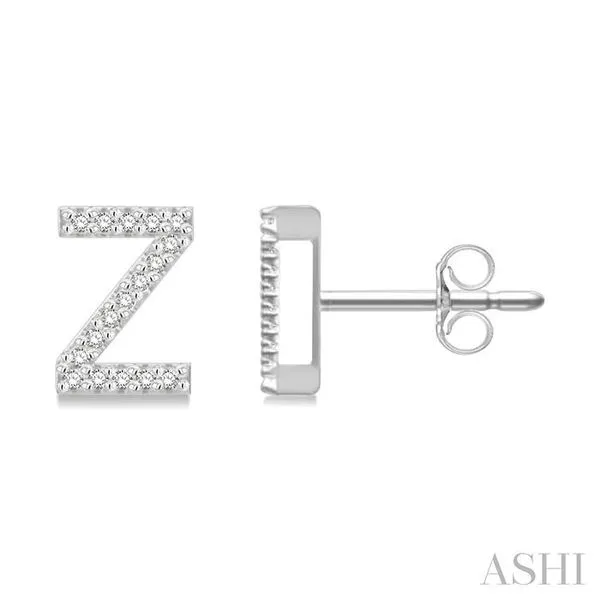 (256) 764-40131/10 Ctw Initial 'Z' Round Cut Diamond Earrings in 10K White Gold