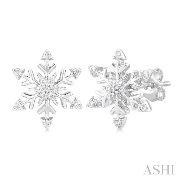 (256) 764-40131/10 Ctw Petite Snowflake Round Cut Diamond Halo Fashion Stud Earring in 10K White Gold