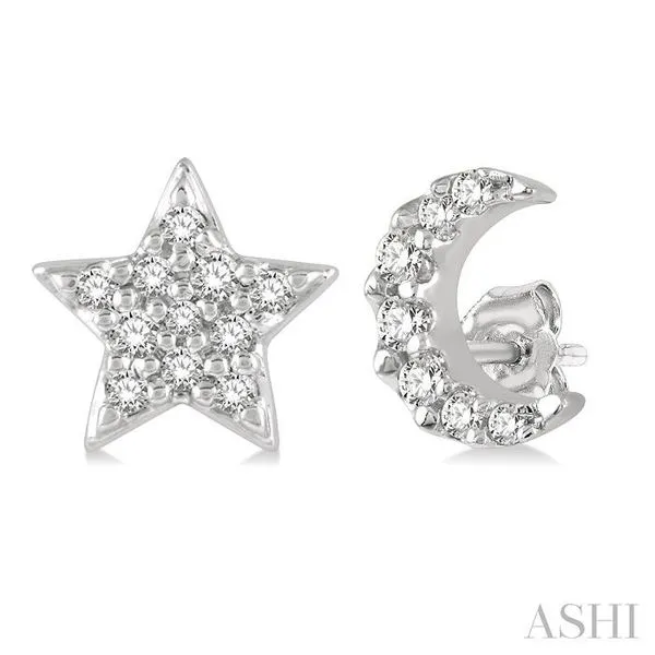 (256) 764-40131/10 Ctw Star & Crescent Mix Round Cut Diamond Petite Fashion Earring in 10K White Gold