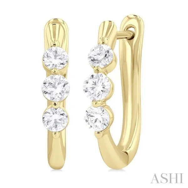 (256) 764-40131/2 Ctw 3-Stone Round Cut Diamond Fashion Hoop Earring in 14K Yellow Gold