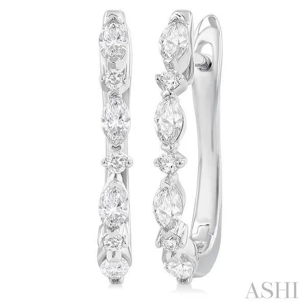 (256) 764-40131/2 Ctw Marquise and Round Cut Diamond Fashion Hoop Earrings in 14K White Gold