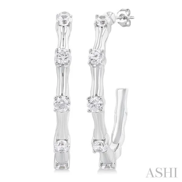 (256) 764-40131/3 Ctw Bamboo Shoot Inspired Round Cut Diamond Fashion Half Hoop Earring in 14K White Gold