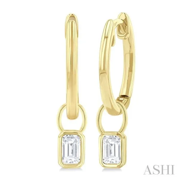 (256) 764-40131/3 Ctw Bezel Set Emerald Cut Diamond Huggie Earrings in 14K Yellow Gold