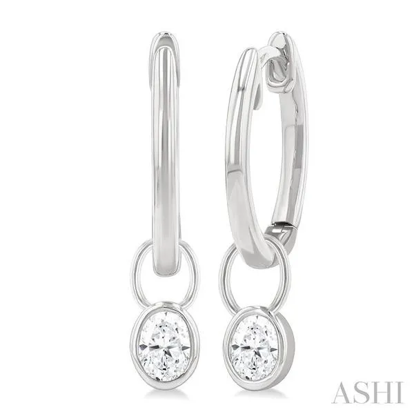 (256) 764-40131/3 Ctw Bezel Set Oval Cut Diamond Huggie Earrings in 14K White Gold