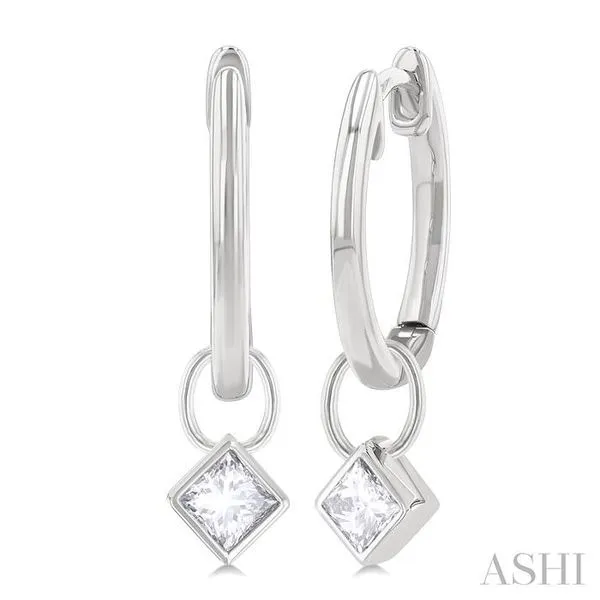 (256) 764-40131/3 Ctw Bezel Set Princess Cut Diamond Huggie Earrings in 14K White Gold