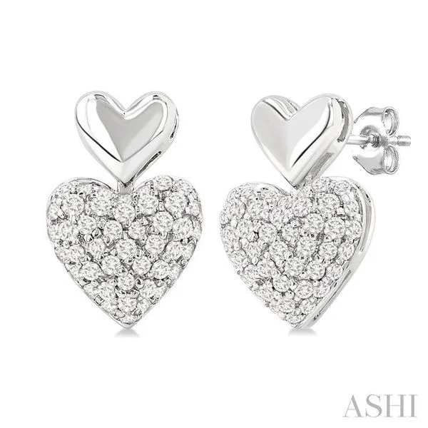 (256) 764-40131/3 Ctw Heart Shape Mount Pave Set Single Cut Diamond Fashion Earrings in 10K White Gold