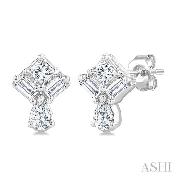 (256) 764-40131/3 Ctw Mixed Cut Diamond Fashion Earrings in 14K White Gold