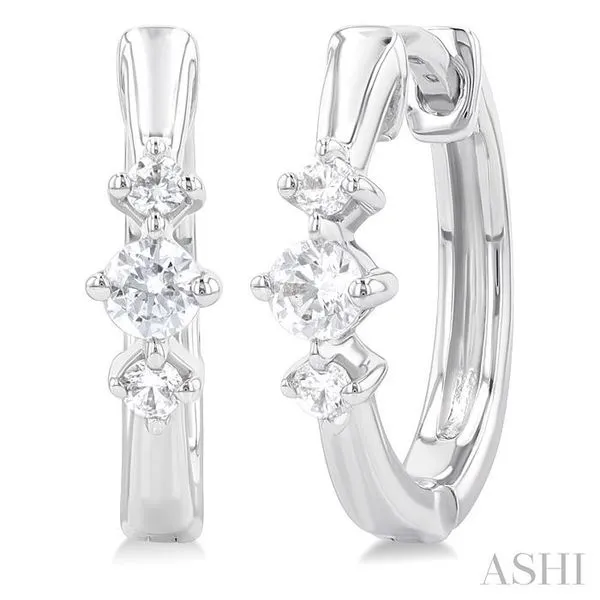 (256) 764-40131/4 Ctw Three Stone Round Cut Diamond Hoop Earrings in 10K White Gold