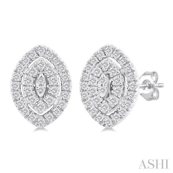 (256) 764-40131/5 Ctw Double Halo Marquise Shape Petite Round Cut Diamond Fashion Stud Earring in 10K White Gold