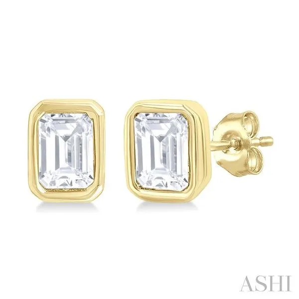 (256) 764-40131/5 Ctw Petite Bezel Set Emerald Cut Diamond Fashion Stud Earring in 10K Yellow Gold