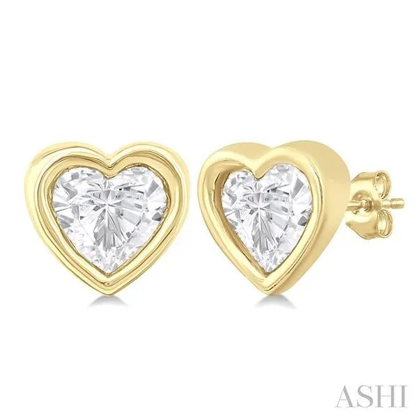 (256) 764-40131/5 Ctw Petite Bezel Set Heart Shape Diamond Fashion Stud Earring in 10K Yellow Gold