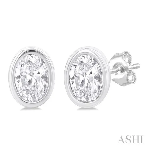 (256) 764-40131/5 Ctw Petite Bezel Set Oval Cut Diamond Fashion Stud Earring in 10K White Gold