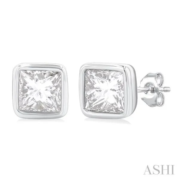 (256) 764-40131/5 Ctw Petite Bezel Set Princess Cut Diamond Fashion Stud Earring in 10K White Gold
