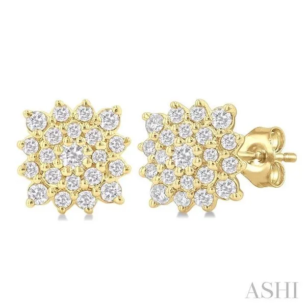 (256) 764-40131/5 Ctw Petite Cushion Shape Round Cut Diamond Cluster Fashion Stud Earring in 10K Yellow Gold
