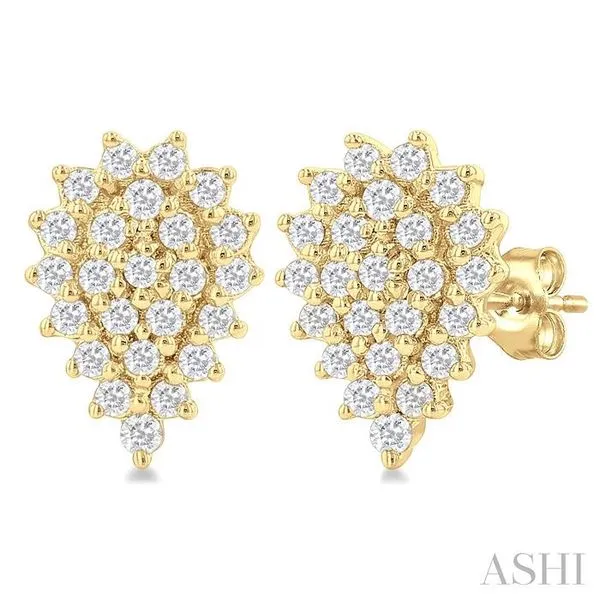(256) 764-40131/5 Ctw Petite Pear Shape Round Cut Diamond Cluster Fashion Stud Earring in 10K Yellow Gold