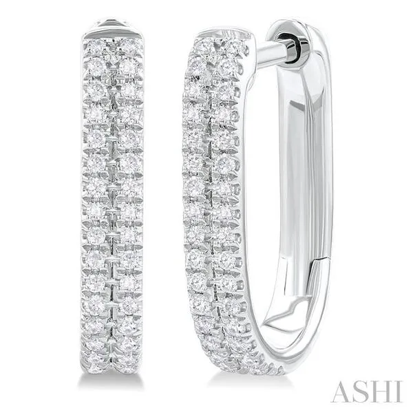 (256) 764-40131/5 Ctw Twin Row Round Cut Diamond Fashion Hoop Earring in 10K White Gold