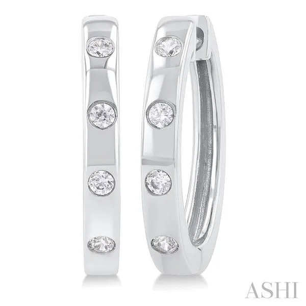 (256) 764-40131/6 Ctw Flush Bezel Set Diamond Fashion Hoop Earring in 10K White Gold