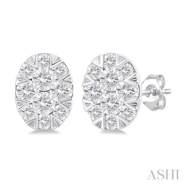 (256) 764-40131/6 Ctw Lovebright Petite Oval Shape Round Cut Diamond Fashion Stud Earring in 10K White Gold