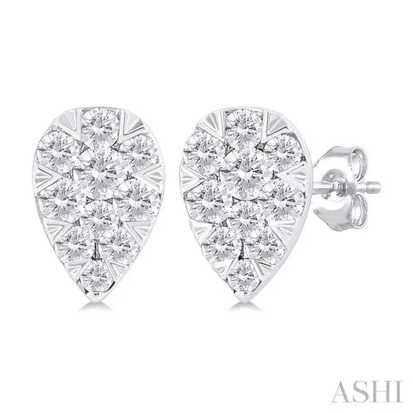 (256) 764-40131/6 Ctw Lovebright Petite Pear Shape Round Cut Diamond Fashion Stud Earring in 10K White Gold