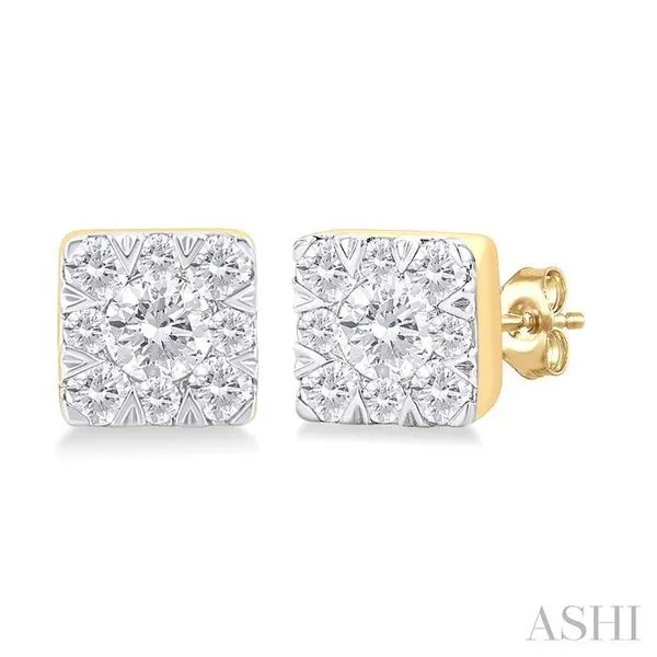 (256) 764-40131/6 Ctw Lovebright Petite Square Shape Round Cut Diamond Fashion Stud Earring in 10K Yellow Gold