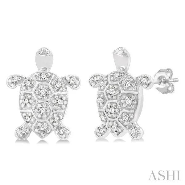 (256) 764-40131/6 Ctw Petite Turtle Round Cut Diamond Fashion Stud Earring in 10K White Gold