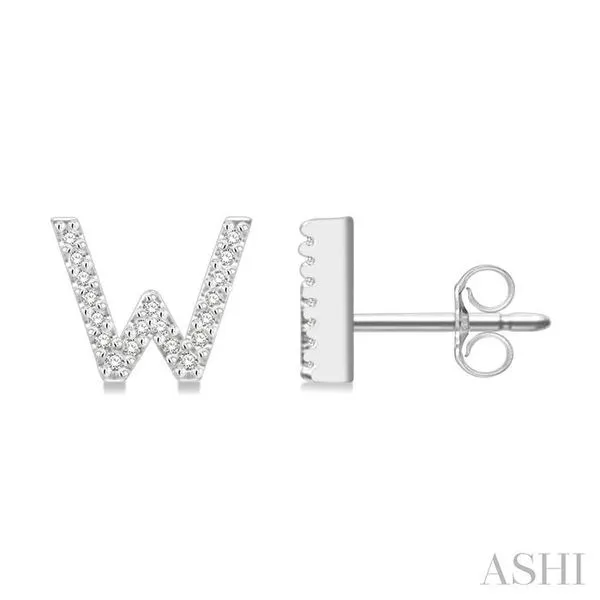(256) 764-40131/8 Ctw Initial 'W' Round Cut Diamond Earrings in 10K White Gold