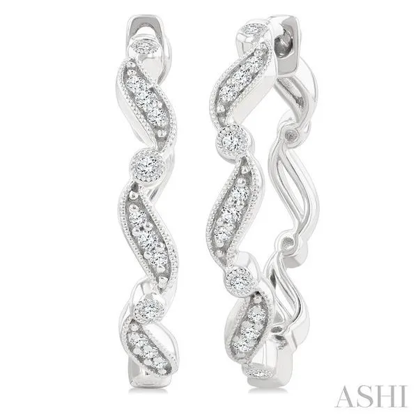 (256) 764-40131/8 Ctw Wavy Pattern Single Cut Diamond Fashion Hoop Earrings in 10K White Gold