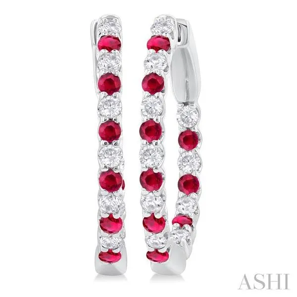 (256) 764-40131.8 MM Ruby and 1/2 Ctw Round Cut Inside-Out Diamond Precious Hoop Earrings in 14K White Gold
