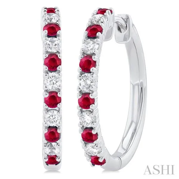 (256) 764-40131.80 MM Round Shape Ruby and 1/4 Ctw Round Cut Diamond Precious Hoop Earring in 10K White Gold