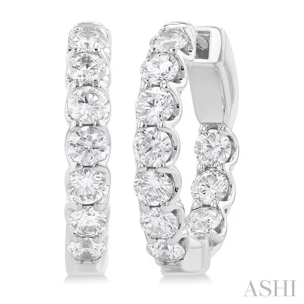 (256) 764-40132 Ctw Inside-Out Embellished Round Cut Diamond Hoop Earrings in 14K White Gold