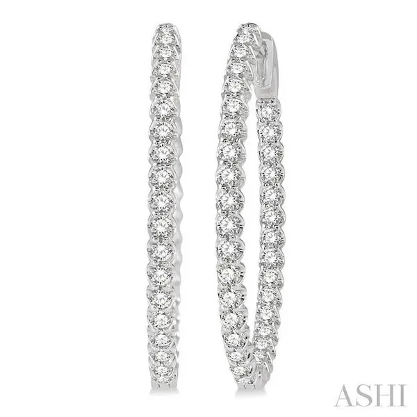 (256) 764-40132 Ctw Inside-Out Round Cut Diamond Oval Shape Hoop Earrings in 14K White Gold
