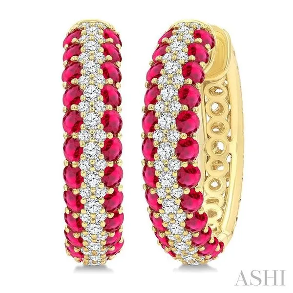 (256) 764-40132 MM Round Cut Ruby and 1/2 Ctw Round Cut Diamond Precious Hoop Earrings in 14K Yellow Gold