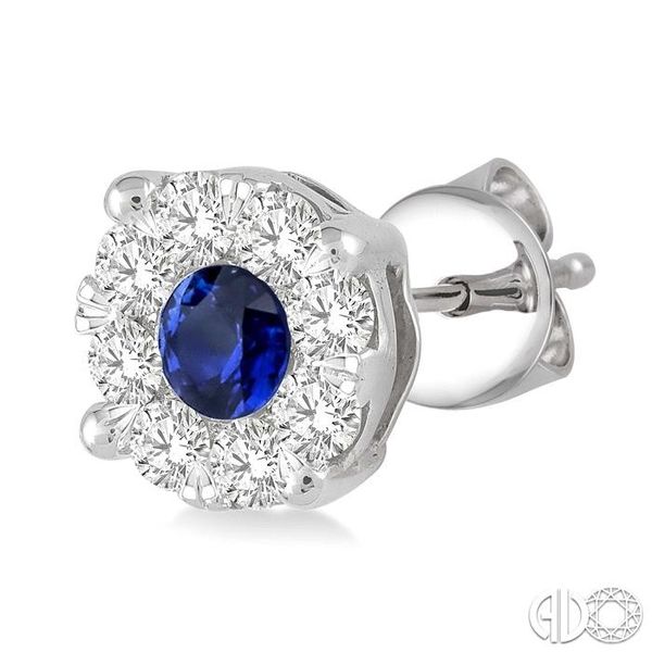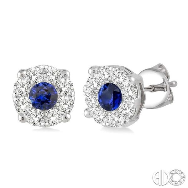 (256) 764-40133.3 MM Round Cut Sapphire and 1/2 Ctw Lovebright Diamond Precious Earrings in 14K White Gold