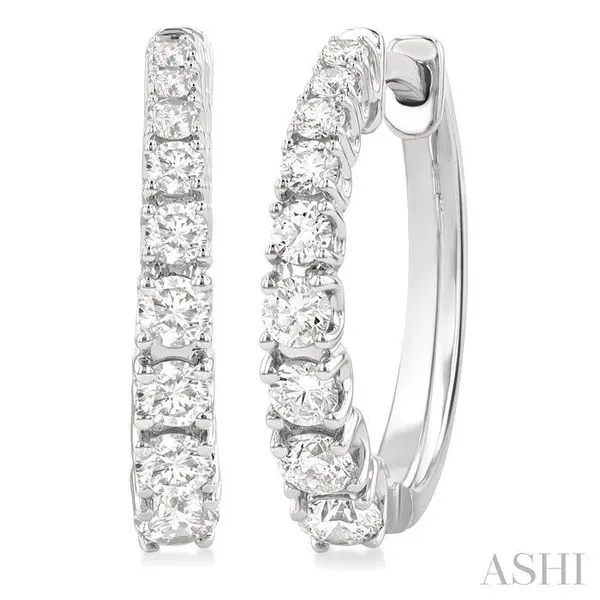 (256) 764-40133/4 Ctw Graduated Round Cut Diamond Fashion Hoop Earrings in 14K White Gold