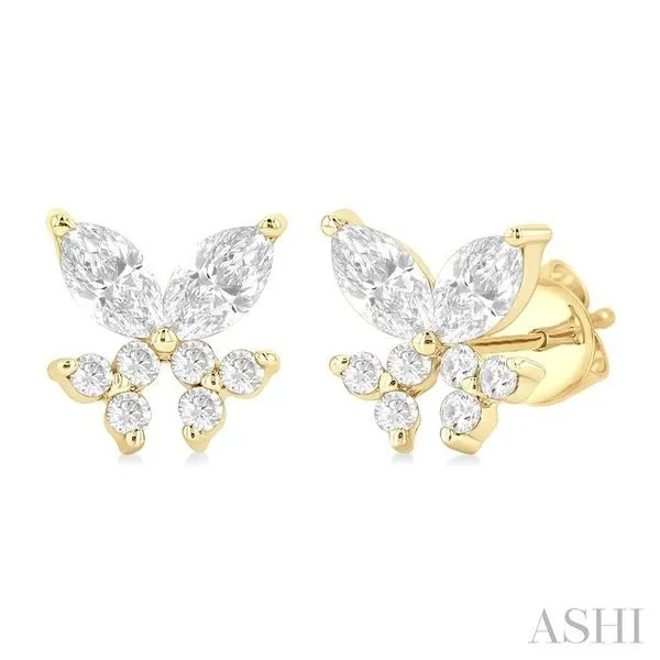 (256) 764-40133/8 Ctw Marquise and Round Cut Diamond Criss-Cross Fish Stud Earrings in 14K Yellow Gold