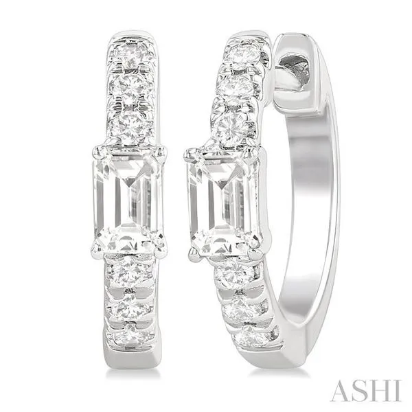 (256) 764-40133/8 Ctw Octagon Shape and Round Cut Diamond Fashion Huggie Petite Earrings in 14K White Gold